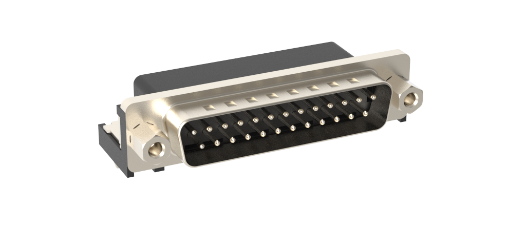 Dsub, Stamped Signal 3A, Right Angle PCB Through Hole, FP=10.40mm (0.409in), Row Pitch 2.54mm, 25 Pin, 0.38m (15in) Gold, Bright Tin Shell+Grounding Dimples, 4-40 Front Screwlock, Ground Tab with Boardlock