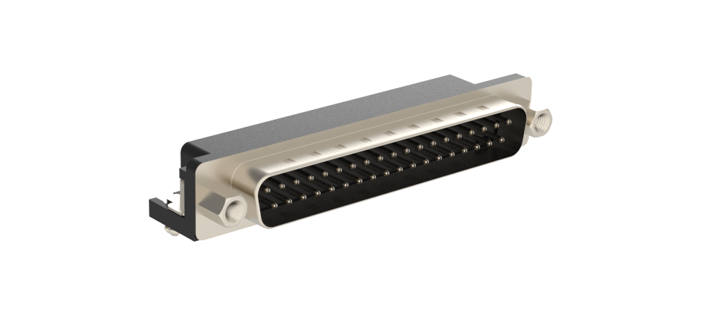 Dsub, Stamped Signal 3A, Right Angle PCB Through Hole, FP=8.08mm (0.318in), Row Pitch 2.84mm, 37 Pin, 0.38m (15in) Gold, Bright Tin Shell+Grounding Dimples, M3 Front Screwlock, Ground Tab with Boardlock
