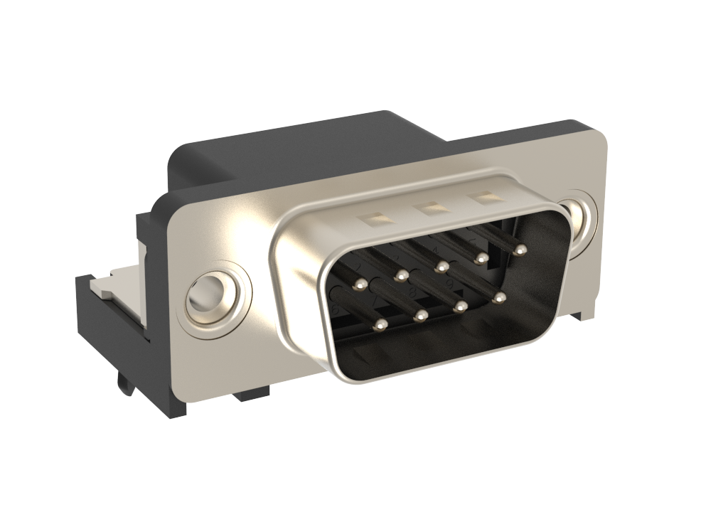 Dsub, Stamped Signal 3A, Right Angle PCB Through Hole, FP=10.40mm (0.409in), Row Pitch 2.54mm, 09 Pin, 0.38m (15in) Gold, Bright Tin Shell+Grounding Dimples, 4-40 Rear Insert, Ground Tab with Boardlock