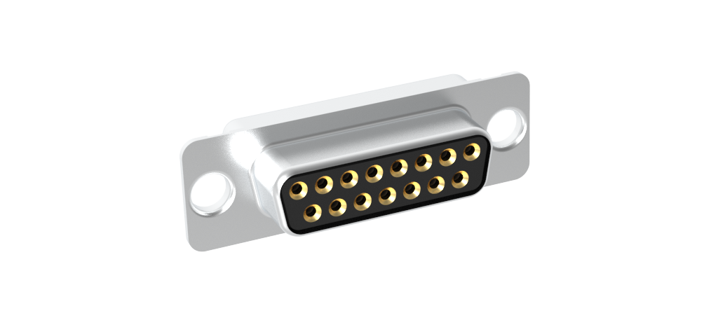 Dsub, Machined Pin 7.5A, Straight Soldercup, 15 Socket, Bright Tin Shell, Flash Gold, 3.1mm (0.122in) Clear Hole
