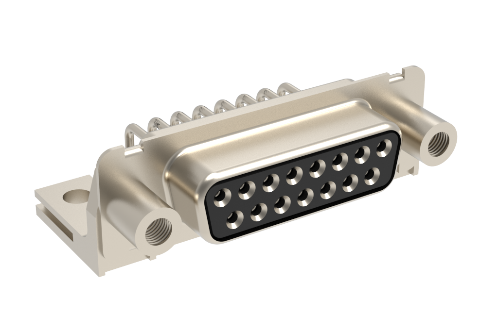 Dsub, Machined signal 7.5A, Right Angle PCB Thru Hole, FP=10.3mm, Cnt Row Spacing 2.54mm, Cnt Tail 0.6mm, 15 Socket, Bright Tin Shell, Flash Gold, 3.1mm (.122in) Clear Hole, Plastic R/A Bracket Without Boardlock