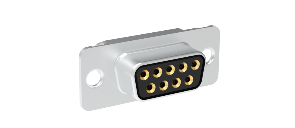 Dsub, Machined Signal 7.5A, Straight Screw Terminals, Bright Tin Shell, 09 Socket, Flash Gold, 3.10mm (0.122in) Clear Hole, 3.10mm (0.122in) Clear Hole, w/t hood DTZK-Straight cable entry, Metallic shell