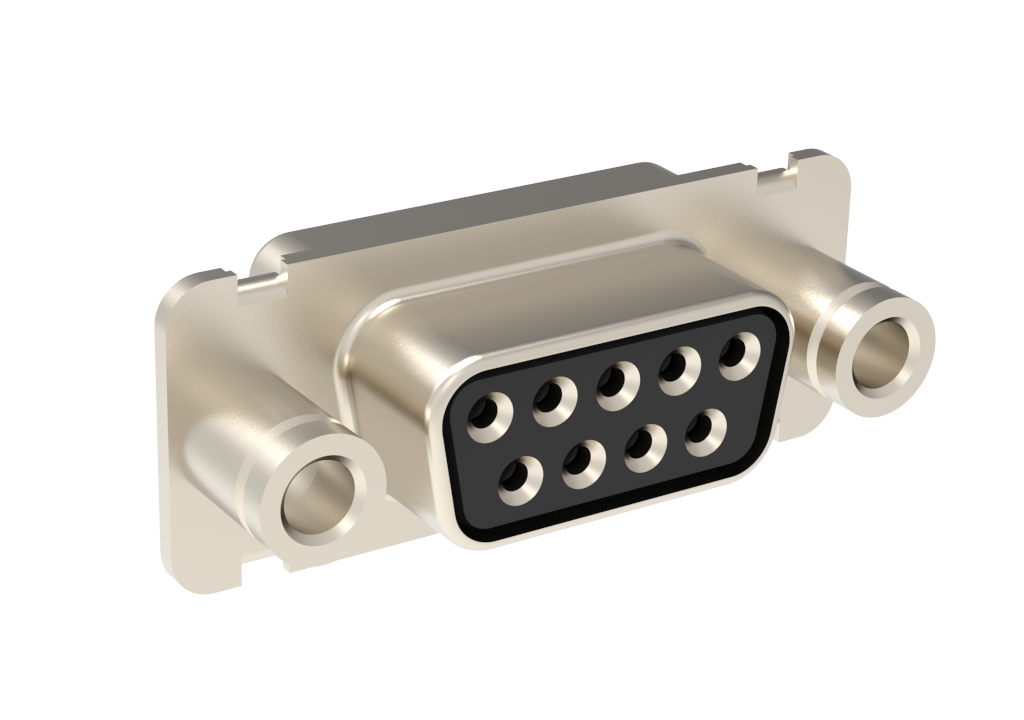 D-Sub Standard Density Connector, Input Output Connectors, , Machined Signal 7.5A, Straight Solder Cup, 9 Position Receptacle, Bright Tin Shell, Flash Gold, M3 Fixed Round Front Screwlock