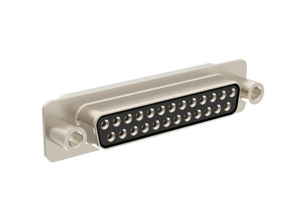 Dsub, Machined signal 7.5A, Straight Soldercup, 25 Socket, Bright Tin Shell, 0.38μm (15μin) Gold, 4-40 Fixed Round Front Screwlock, Without Bracket&Boardlock