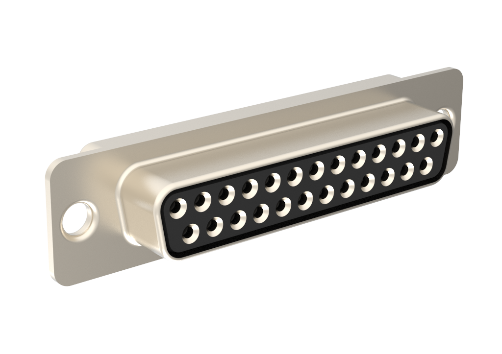 D-Sub Standard Density Connector, Input Output Connectors, , Machined Signal 7.5A, Straight Solder Cup, 25 Position Receptacle, Bright Tin Shell, 0.38μm (14.960μin) Gold Plating