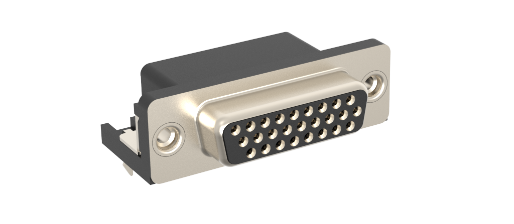 Dsub, Stamped Signal 3A, High Density, Right Angle PCB Through Hole, FP=8.89mm (0.35μin), 26 Socket, Flash Gold, 4-40 Rear Threaded Insert, Ground Tab, With Boardlock
