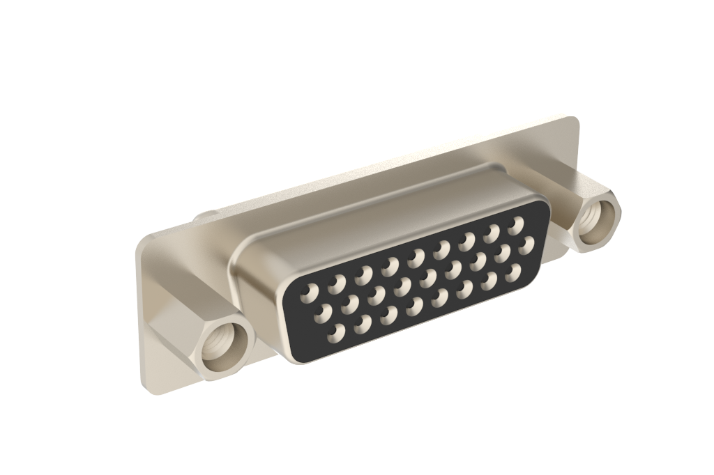 Dsub, Stamped Signal 3A, High Density, Straight Soldercup, 26 Socket, Flash Gold, Fixed 4-40 Front Screwlock, Without Bracket, Without Boardlock