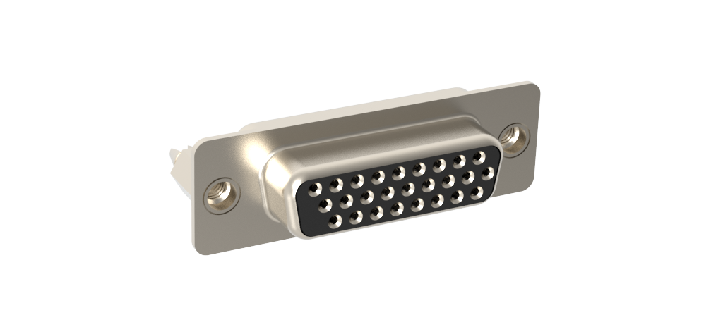 Dsub, Stamped Signal 3A, High Density, Straight PCB Thru Hole, 26 Socket, Flash Gold, 4-40 Rear Insert, 4-40 Threaded Standoff 6.0mm (0.236″), With Boardlock 4.2mm (0.165″).