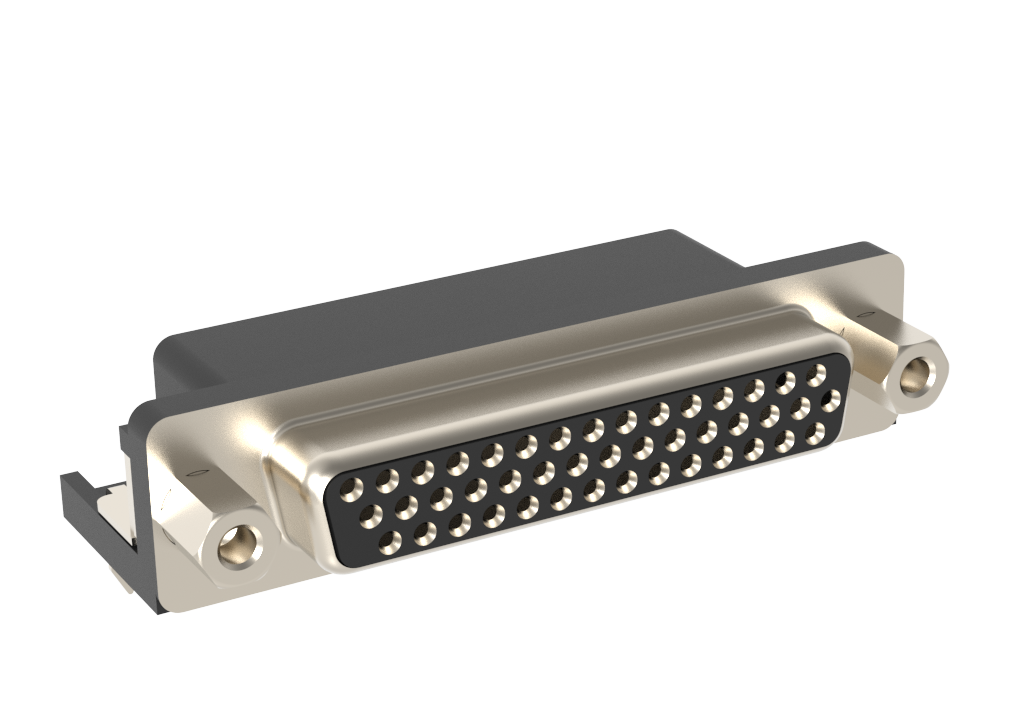 Dsub, Stamped Signal 3A, High Density, Right Angle PCB Thru Hole, FP=8.89mm (0.35μin), 44 Socket, 0.76m (30 in) Gold, M3 Front Screwlock, Ground Tab, With Boardlock