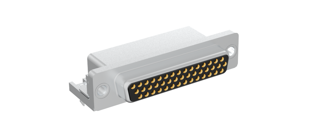 Dsub, Stamped Signal 3A, High Density, Right Angle PCB Thru Hole, FP=8.89mm (0.35μin), 44 Socket, 0.76m (30 in) Gold, 4-40 Front Screwlock, Ground Tab, With Boardlock
