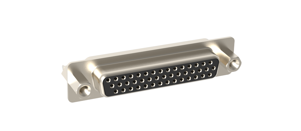 Dsub, Stamped Signal 3A, High Density, Straight PCB Thru Hole, 44 Socket, Flash Gold, 4-40 Fixed Front Screwlock, Standoff 6.0mm (0.236″), With Boardlock 4.2mm (0.165″).