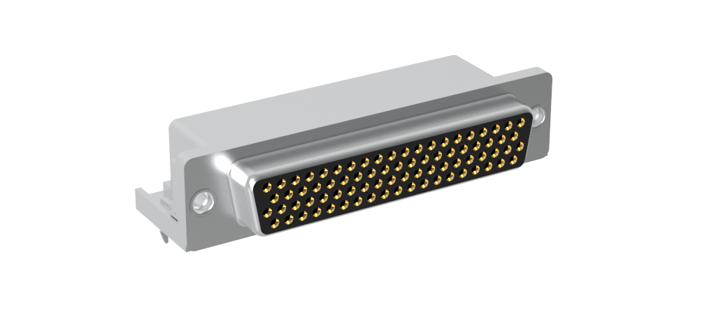 Dsub, Stamped Signal 3A, High Density, Right Angle PCB Through Hole, FP=8.89mm (0.35μin), 78 Socket, Bright Tin Shell, 0.76m (30 in) Gold, 4-40 Rear Insert, Ground Tab with Boardlock