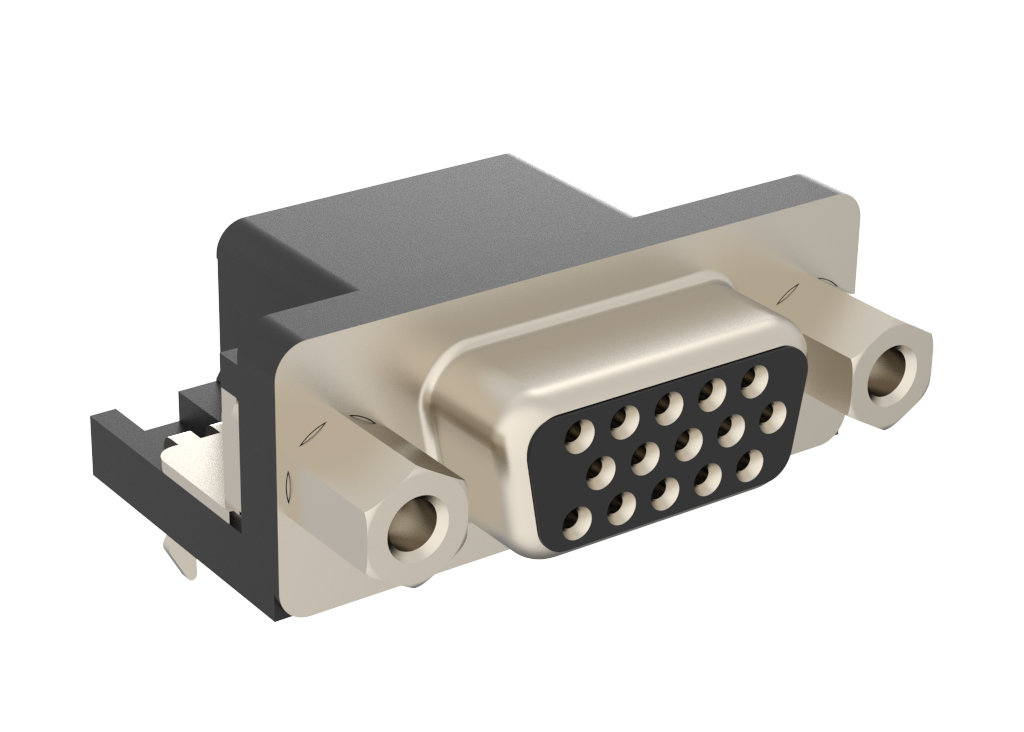 Dsub, Stamped Signal 3A, High Density, Right Angle PCB Through Hole, FP=8.89mm (0.35μin), 15 Socket, Flash Gold, M3 Front Screwlock, Ground Tab, With Boardlock
