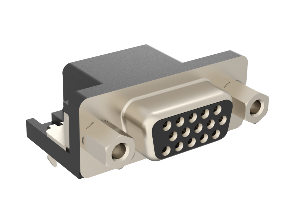 Dsub, Stamped Signal 3A, High Density, Right Angle PCB Thru Hole, FP=8.89mm (0.35μin), 15 Socket, 0.76m (30 in) Gold, M3 Front Screwlock, Ground Tab, With Boardlock