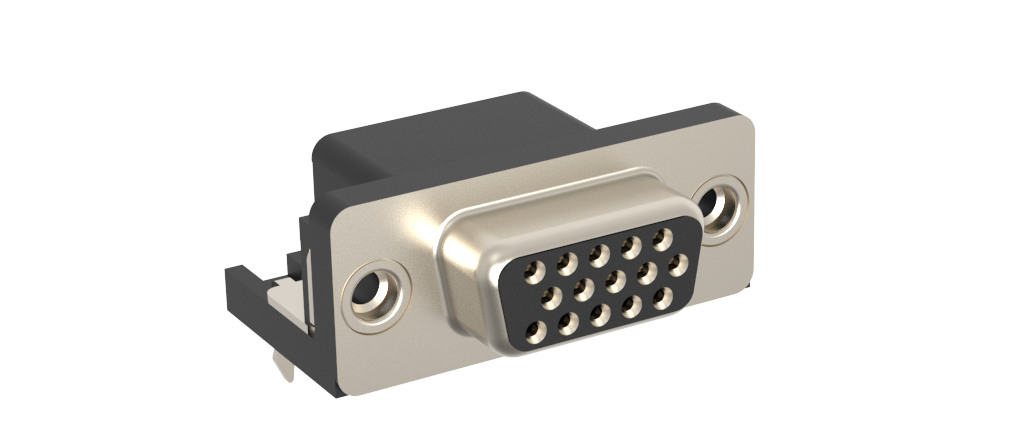 Dsub, Stamped Signal 3A, High Density, Right Angle PCB Through Hole, FP=8.89mm (0.35μin), 15 Socket, Bright Tin Shell, Flash Gold, 4-40 Rear Insert, Ground Tab with Boardlock