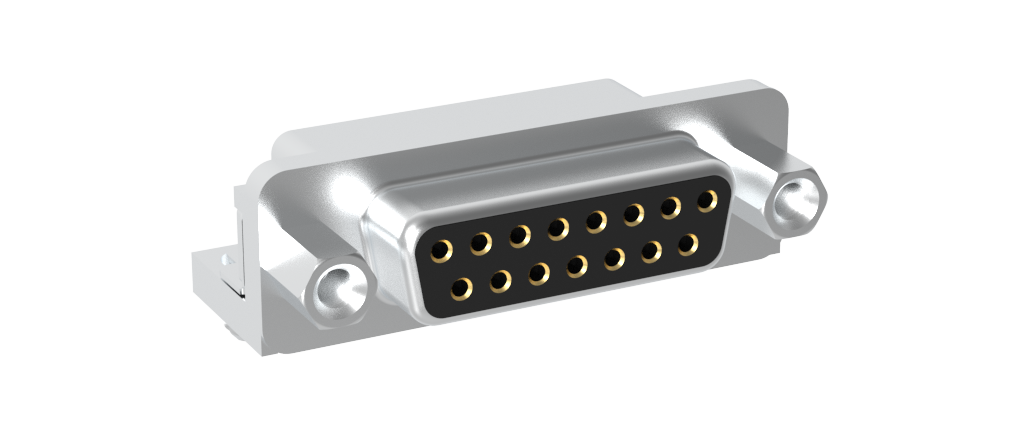 Dsub, Stamped Signal 3A, Right Angle PCB Through Hole, FP=8.08mm (0.318in), Row Pitch 2.84mm, 15 Socket, 0.76m (30in) Gold, Bright Tin Shell, 4-40 Front Screwlock, Ground Tab with Boardlock