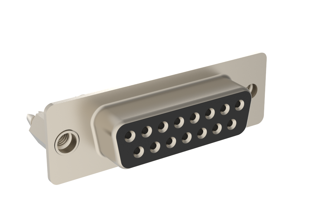 Dsub, Stamped Signal 3A, Straight PCB Thru Hole, 15 Socket, 0.76μm (30μin) Gold, Bright Tin Shell, 4-40 Threaded Standoff 6.0mm (0.236in), With Boardlock 4.2mm (0.165in)