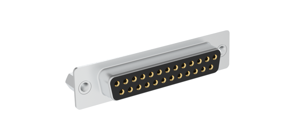 D-Sub Standard Density Connector, Input Output Connectors, Stamped Signal 3A, Straight Solder Cup, 25 Position Receptacle, Flash Gold, Bright Tin Shell, 4-40 Rear Insert