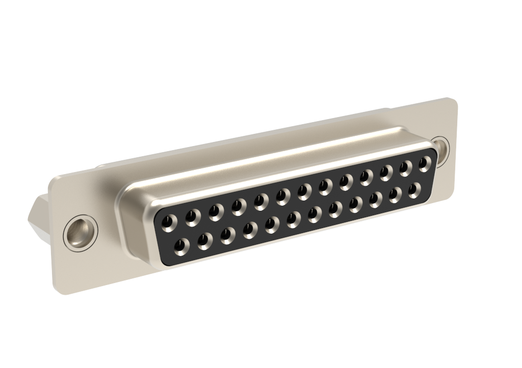 Dsub, Stamped Signal 3A, Straight PCB Thru Hole, 25 Socket, 0.76μm (30μin) Gold, Bright Tin Shell, 4-40 Rear Nut Height 5.9mm