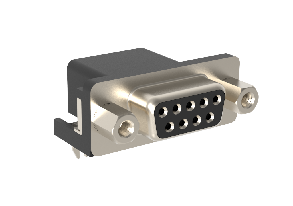 Dsub, Stamped Signal 3A, Right Angle PCB Through Hole, FP=14.84mm (0.584in), Row Pitch 2.84mm, 09 Socket, 0.76m (30in) Gold, Bright Tin Shell, 4-40 Front Screwlock, Ground Tab with Boardlock