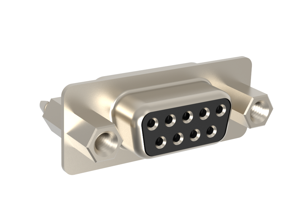 Dsub, Stamped Signal 3A, Straight PCB Thru Hole, 09 Socket, 0.76μm (30μin) Gold, Bright Tin Shell, M3 Removable Front Screwlock, Standoff 6.0mm (0.236in), With Boardlock 4.2mm (0.165in)