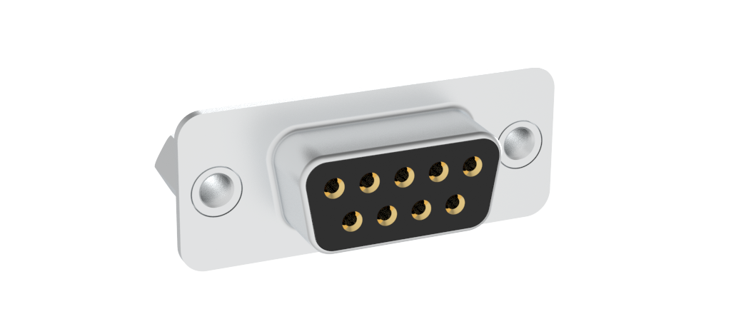 D-Sub Standard Density Connector, Input Output Connectors, Stamped Signal 3A, Straight Solder Cup, 9 Position Receptacle, Flash Gold, Bright Tin Shell, 4-40 Rear Insert