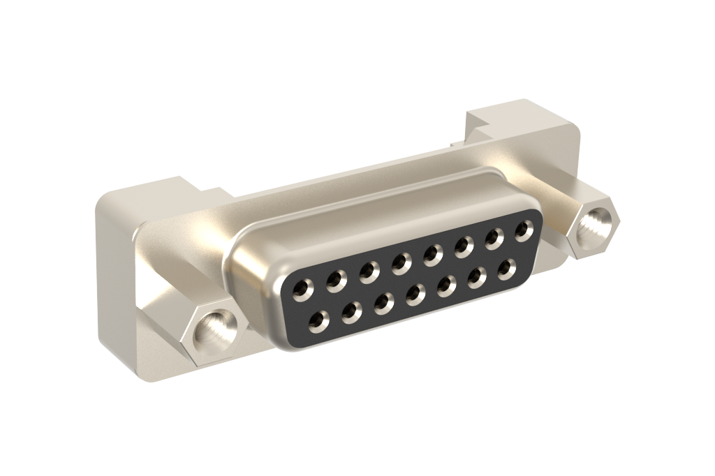 Dsub, Stamped Signal 3A, Straight PCB Thru Hole Low Profile, Height=6.02mm (.237in), 15 Socket, Bright Tin Shell, Flash Gold, M3 Threaded Boardlock with M3 Front Screwlock Installed