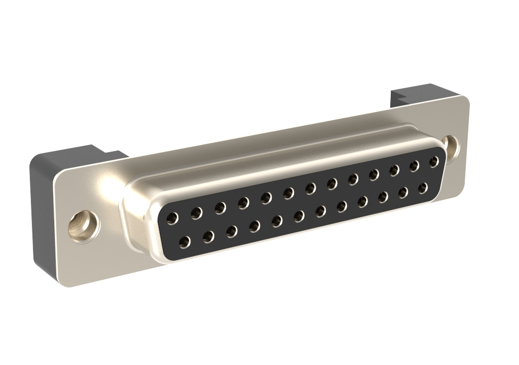 Dsub, Stamped Signal 3A, Straight PCB Thru Hole Low Profile, Height=6.02mm (.237in), 25 Socket, Bright Tin Shell, 0.76μm (30μin) Gold, 4-40 Threaded Boardlock