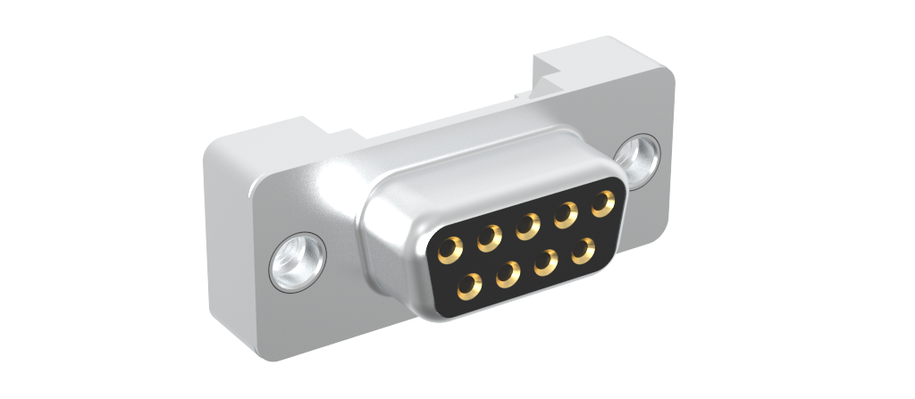 Dsub, Stamped Signal 3A, Straight PCB Thru Hole Low Profile, Height=6.02mm (.237in), 9 Socket, Bright Tin Shell, Flash Gold, M3 Threaded Boardlock