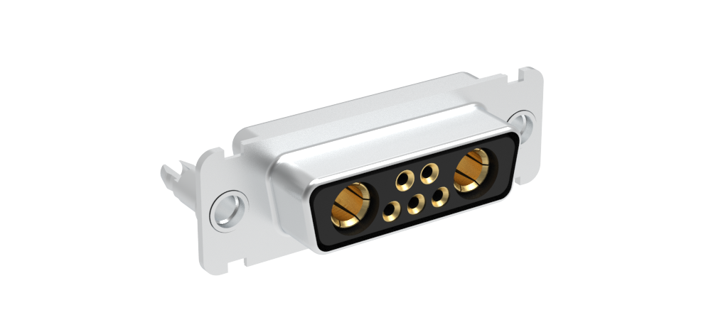 Dsub, Machined Hybrid, 7W2, Power (20A)&Signal (7.5A) Contacts, Socket, Straight PCB Thru Hole, Bright Tin Shell, 0.38m (15 in) Power&0.38m (15 in) Signal, 4-40 Threaded Standoff (Panel Side) with Boardlock