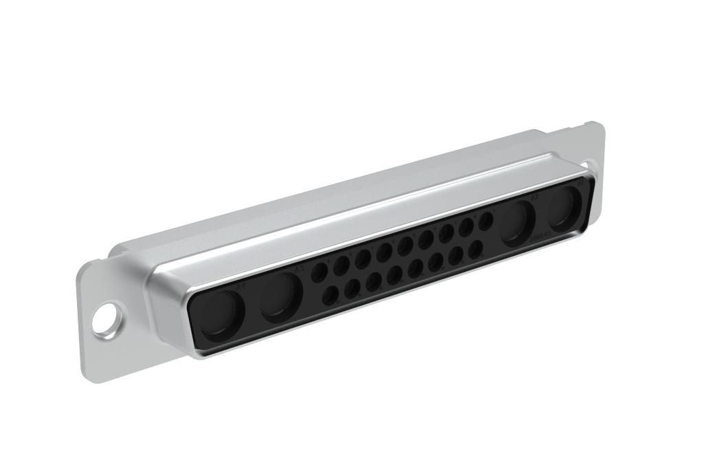 Dsub, Machined Hybrid, 21WA4, Power (20A)&Signal (7.5A) Contacts, Socket, Straight PCB Thru Hole, Bright Tin Shell, 0.38m (15 in) Power&0.38m (15 in) Signal, 3.05mm (0.120in) Clear Hole, Without Standoff&Boardlock