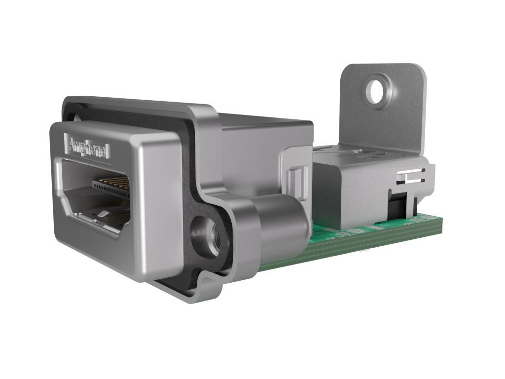 Rugged HDMI, IP67, Input Output Connectors, Right Angle, with HDMI Locking Tab Connector, 19 Position