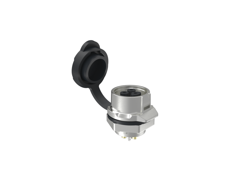 MRD B Panel Mount Receptacle, 3 Position, Sockets, Metal, Solder Cup, Dust Cover