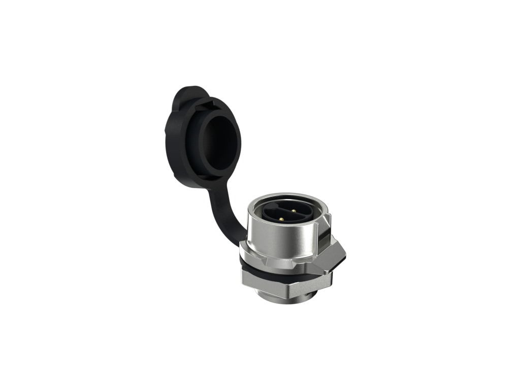 MRD B Panel Mount receptacle, 2 Position, Pins, Metal, Solder Cup, Dust Cover