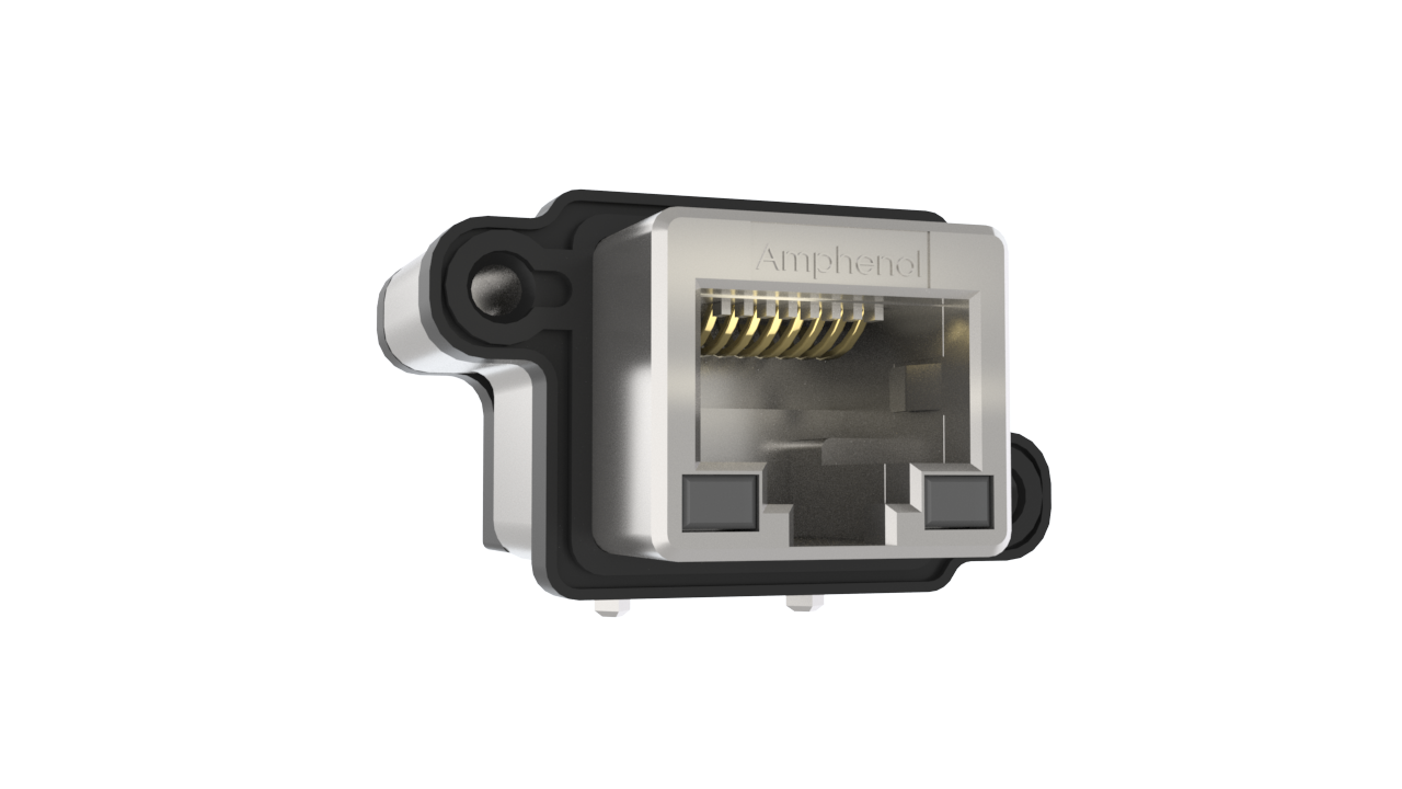 Single port with shell mounting holes, 8 contacts, Vertical PCB tails, Unified Thread, with LEDs