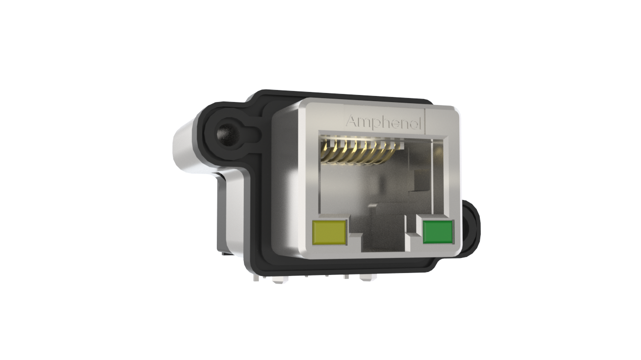 Single port with shell mounting holes, 8 contacts, Right angle PCB tails, Metric Thread, with LEDs