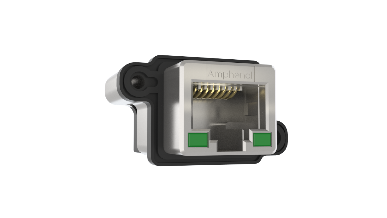 Single port with shell mounting holes, 8 contacts, Vertical angle PCB tails, Metric Thread, with LEDs