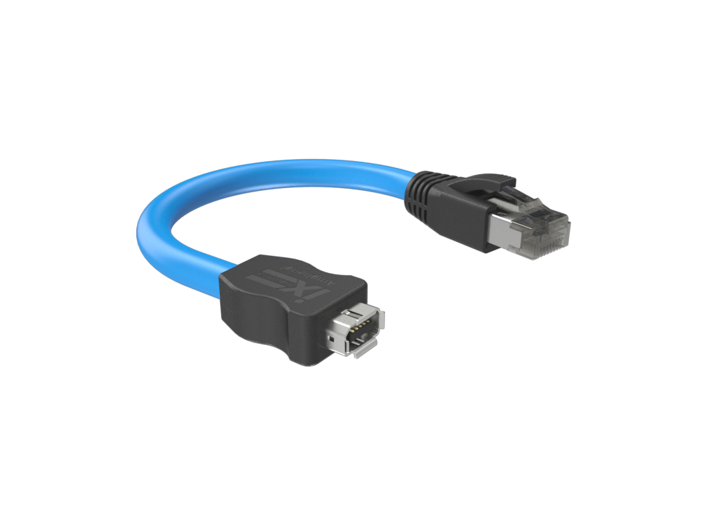 ix Industrial Cable, ix Receptacle to RJ45 Plug, Type A, 2.0m, 26AWG 8 Wire, PVC, Cat 6A, Gold 8μin