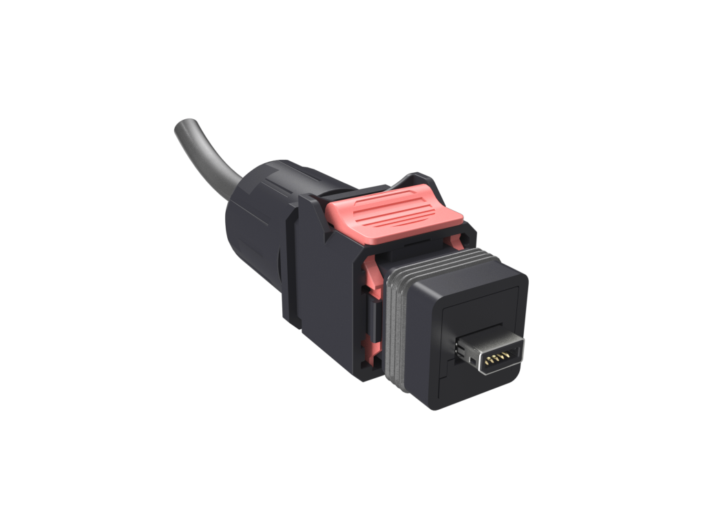 Rectangular Push Pull IP67 Industrial Ethernet Cable Assembly, NDH, Ix Industrial, Hood + Cable Assembly, Ix A Key on one end and Pigtail on other end, 30μin Pd Ni with Gold flash plating Gold plating, 0.5m