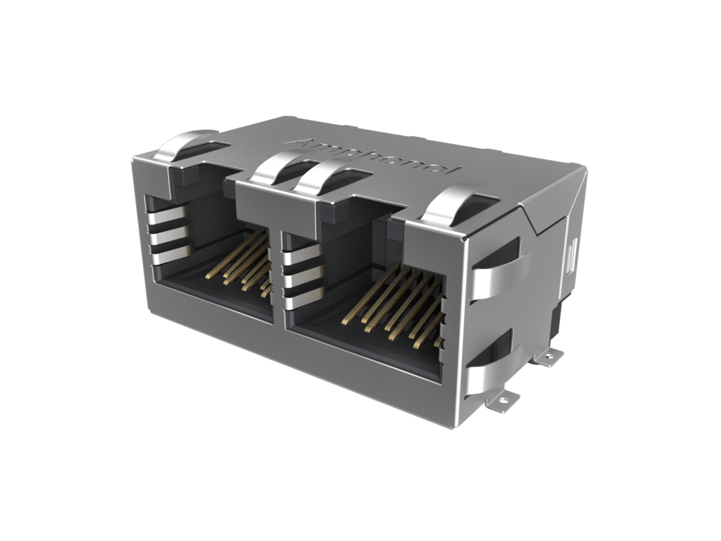 Modular Jack – 2P 8P8C, Right Angle, CAT6, Surface Mount, Single Port, Shield With Top and Side EMI Tabs, With Housing Pegs, No LEDs