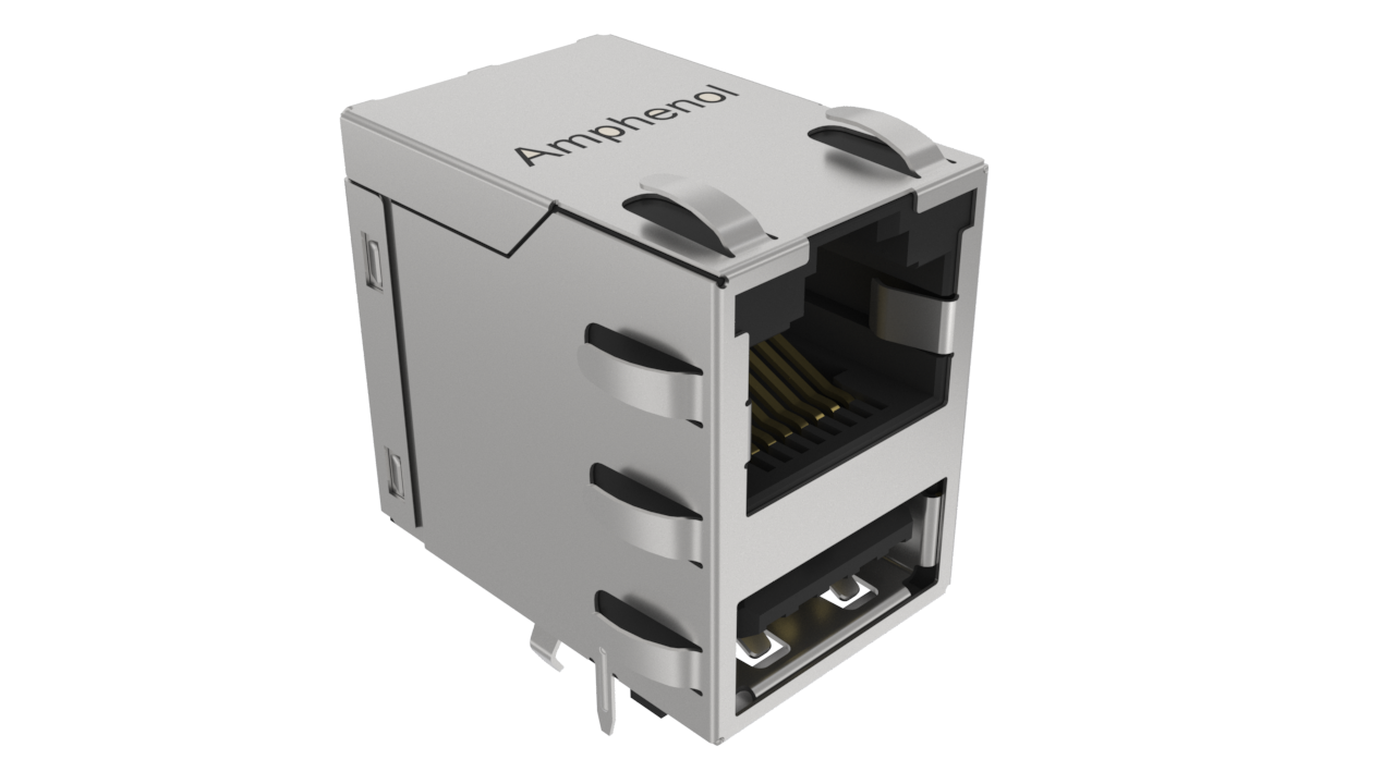 Stacked CAT5E RJ45 + USBA 3.2 Gen2 with Shield and EMI Tabs , Without LED