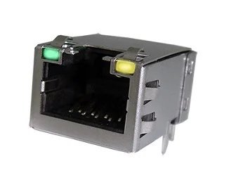 Modular Jack, Input Output Connectors – Cat6A, Single Port, 8P8C, Right Angle, With Shield, With LEDs