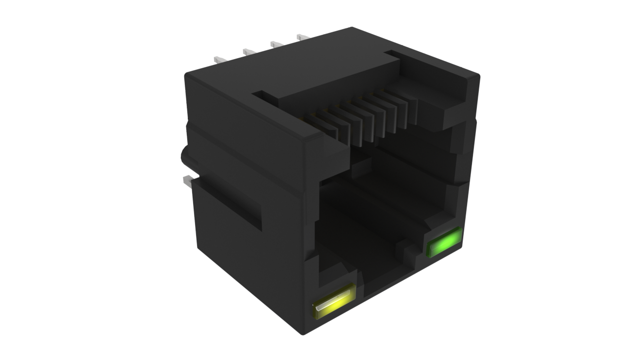 Low Profile Vertical RJ45, Through Hole Mount with LED, Without Shield, 50μin Plating
