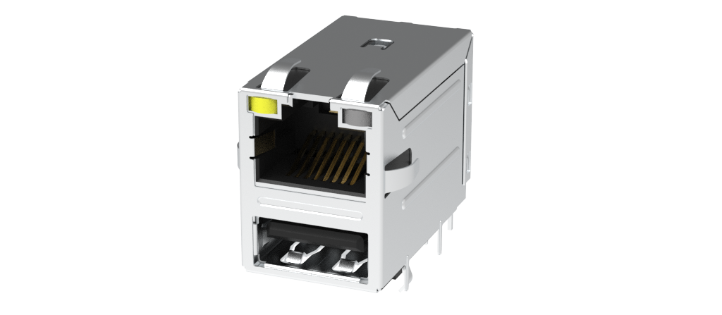 RJMG 10/100 stack single USB 2.0, Right Angle DIP type
