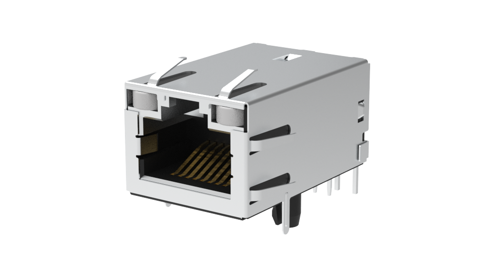 RJ Magnetic (RJMG) – 1×1, Input Output Connectors, Right angle, dip type. 1×1, 10/100 base-T. Green-Yellow/Green-Yellow