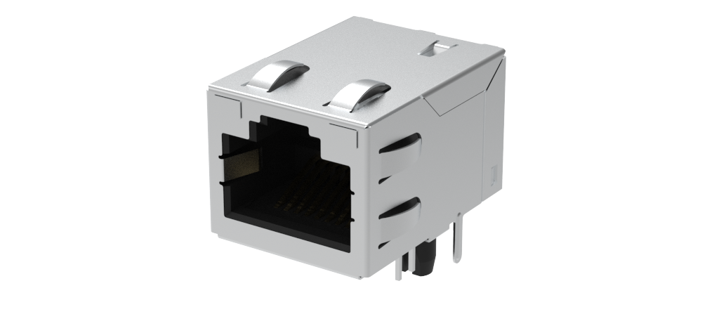 RJ Magnetic (RJMG) – 1×1, Input Output Connectors, Right angle, dip type. Shortbody, 1×1, 1000 base-T, Green/Green-Yellow