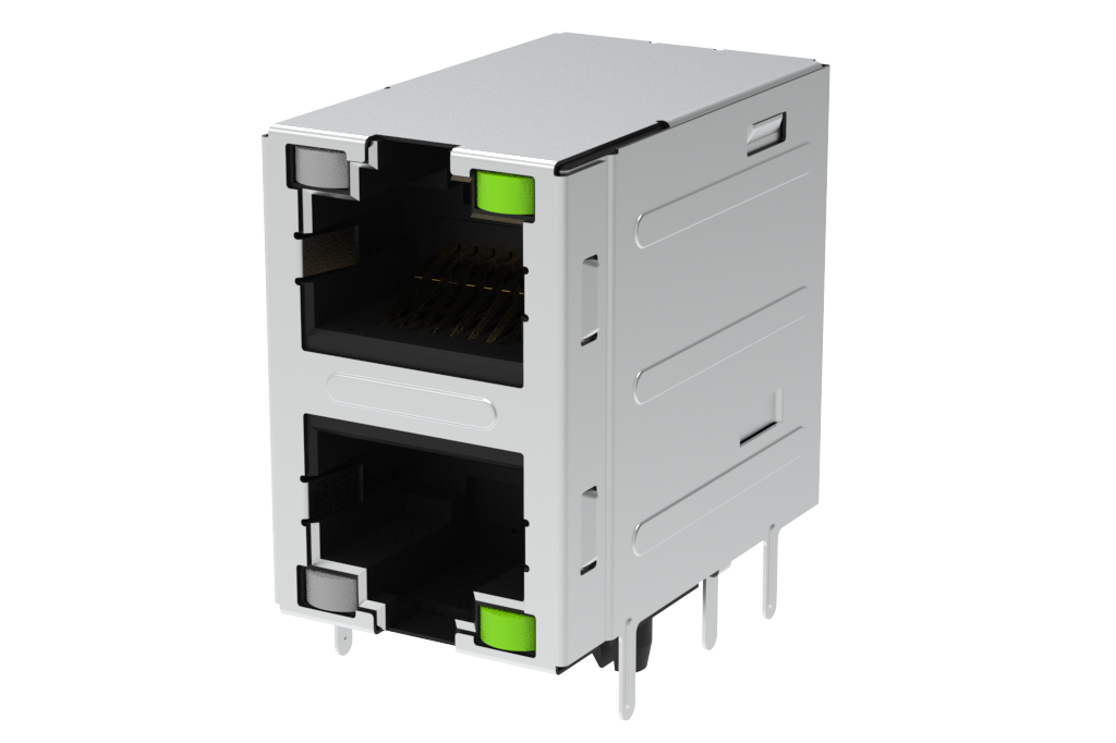 RJMG, Input output Connectors, 1G RJMG part. 2×1 with leds