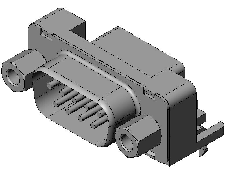 D-sub Connector, PCB side connector, Right angle, 9 pos., Pin
