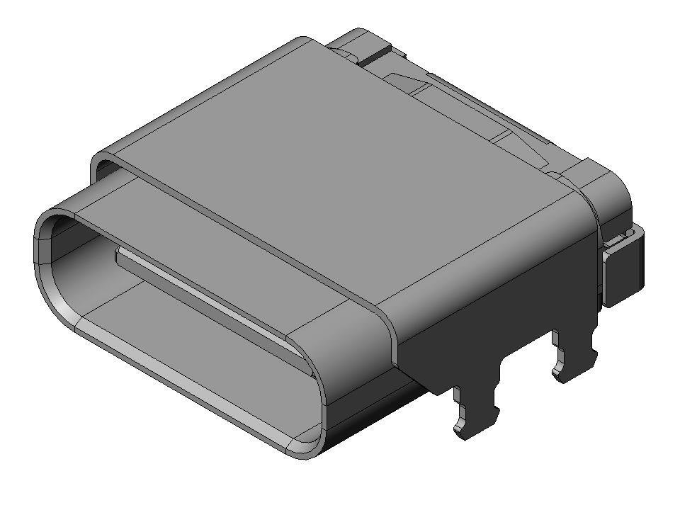 Receptacle, USB Type-C connector, Hybrid contacts, With rear shield, 24 pos., Center height 1.6mm