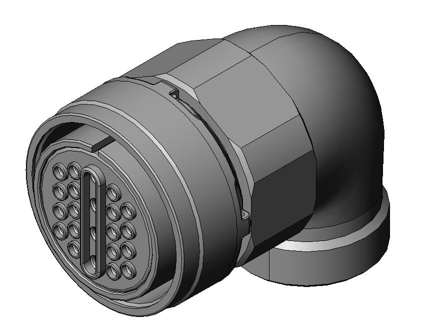 Circular connector, connector standard EN61984, TÜV, Waterproof (when mated) type, 22 pos., Socket, Contact arrangement code: 28-11, Right angle plug,